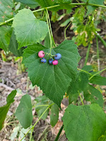 The vine attaches to other plants via delicate tendrils shown here. The leaves, stems, vines and tendrils are all poisonous and should not be eaten.